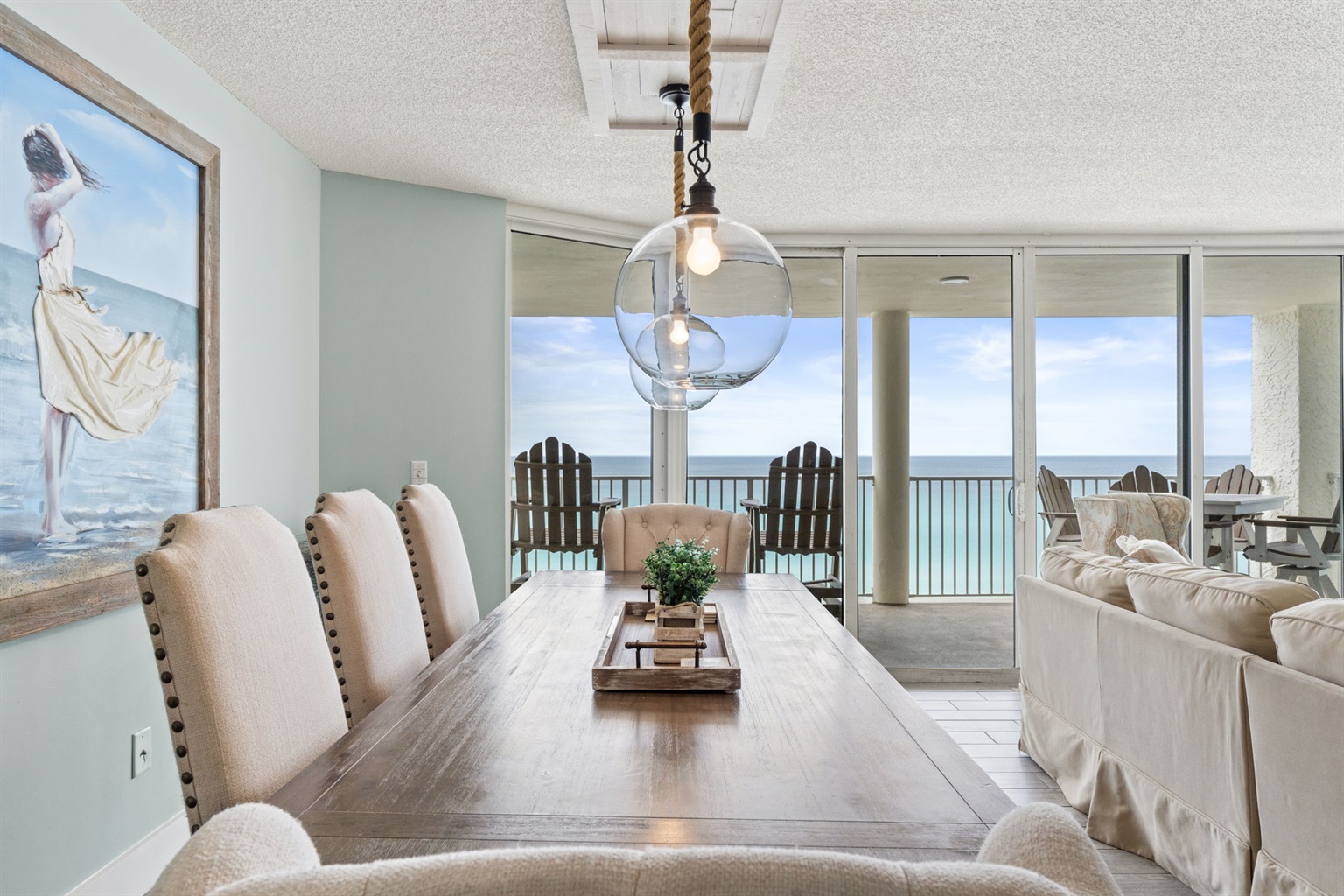🛋️ Open-concept living area with floor-to-ceiling Gulf views